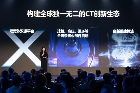 在市场看来,联影首次揭晓其自主研发的“双宽体双源与光子计数”双平台以及在各自平台基础上推出的首款设备——全球首创双宽体双源CT uCT SiriuX与国产首款光子计数能谱CT uCT Ultima,其意义远不止于国产CT在两条超高端技术路线上的一次技术突围;更是联影通过整合新材料、新算法、新系统架构与原生AI,构建起平台级CT融合创新生态优势的有力表达。这一创新生态,将为联影uCT在时间分辨率、空间分辨率、能谱成像、功能评估及容积覆盖范围等多维性能的提升方面,持续赋能,为疾病早期发现、精准诊断等多种临床与科研场景,提供前所未有的影像学支持。