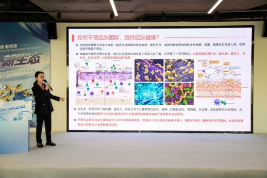 “我们曾拯救肠道内风雨飘摇的生态,如今要守护肌肤上每一寸无声的战场。”承葛皮肤微生态负责人贾思钰在发布环节,揭示了业务拓展的内在逻辑。她指出,基于集团在人体微生态领域深厚的积累,进军护肤市场是技术沉淀与市场洞察的必然结果。