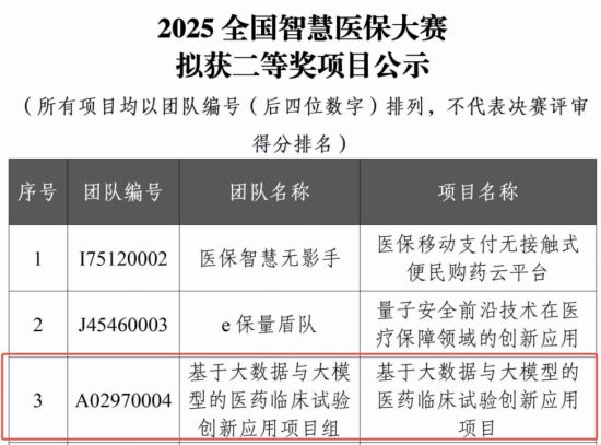 联仁健康医疗大数据科技股份有限公司(以下简称“联仁健康”)凭借在医疗数据智能研究与转化应用领域的领先实力和显著的场景落地价值,以“基于大数据与大模型的医药临床试验创新应用”项目从全国1600余个项目中脱颖而出,荣获本次大赛二等奖。