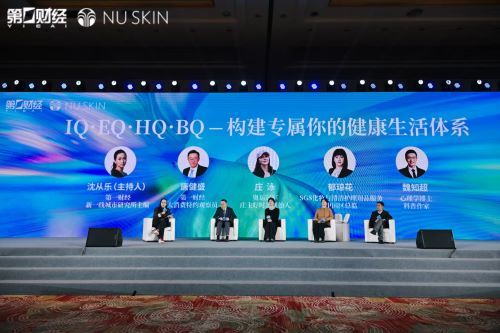 压轴的圆桌论坛以“IQ·EQ·HQ·BQ——构建专属你的健康生活体系”为主题,在第一财经新一线研究院主编沈从乐的主持下,第一财经大消费特约观察员唐健盛、奥运冠军、庄主好时光创始人庄泳、SGS化妆与清洁护理用品服务中国区总监郁琼花、心理学博士、科普作家魏知超一起,展开了精彩对话。