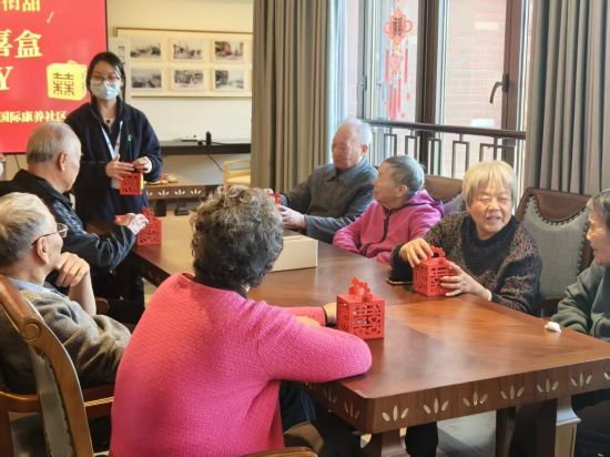 中新网上海新闻2月16日电(张践)当红灯笼挂满街巷,当春联写满期许,2026丙午马年正奔赴而来。2月14日当天,太保家园上海普陀国际康养社区精心筹备的榫卯喜盒DIY活动现场热闹非凡,此次活动共吸引了社区40多名老人参加。该康养社区负责人龚苗告诉记者,今年春节期间一共举办12场活动,将叔叔阿姨们的新春仪式感与幸福感拉满。