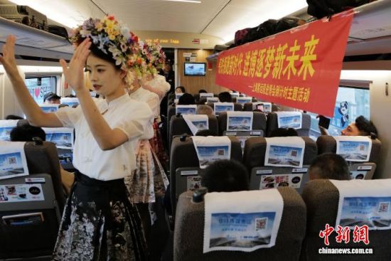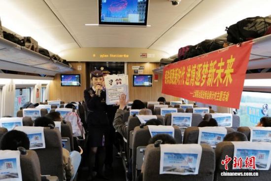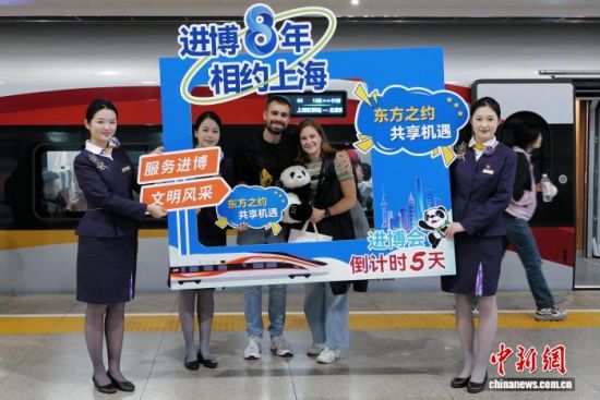 中新网上海10月30日电 (记者 殷立勤)10月30日,在第八届中国国际进口博览会开幕倒计时5天之际,中国铁路上海局集团有限公司上海客运段在G239次高铁列车车厢内,成功举办“高铁领跑新时代 进博逐梦新未来”主题宣传活动,让飞驰的列车成为传递进博热情的流动窗口。