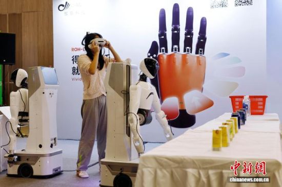 12月12日,工作人员运用VR设备调试机器人。当日,2025全球开发者先锋大会暨国际具身智能技能大赛(GDPS 2025)在上海举行。本届大会以竞技赛事为核心,不仅关注技术比拼、产业展示,更聚焦具身智能技术的实际落地应用。 中新网记者 殷立勤 摄