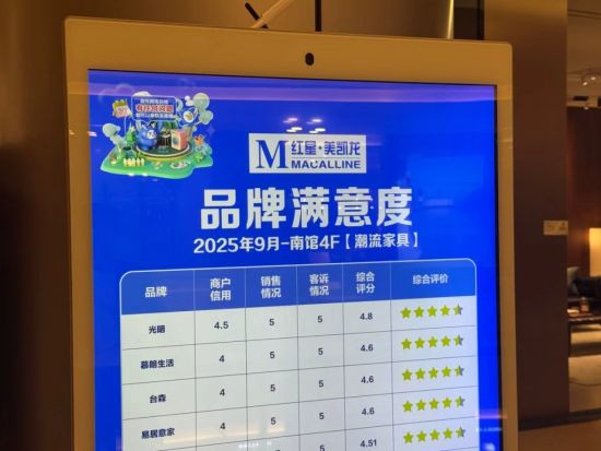 红星美凯龙的工作人员介绍,商场的客情公示和品牌满意度公示,并非简单的数据罗列,而是依托多维度的体系化数据搭建,通过动态化的信息追踪,确保信息能够实时反映真实状况,同时督促并帮助品牌提升产品和服务质量。
