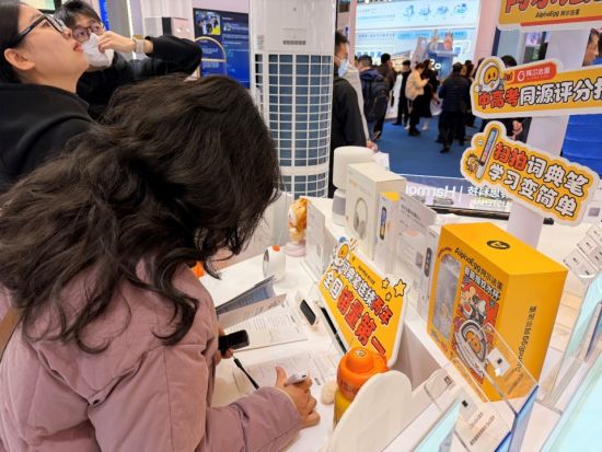 在展台的体验区,不少孩子正拿着一款名为D1s的词典笔,专注地扫描着英文绘本。这只做到极速响应的笔,让孩子萌生的好奇不会因等待而中断。