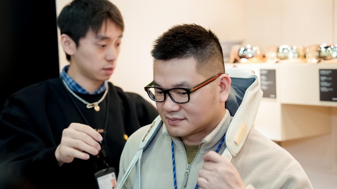 发布会后,媒体与KOL在展台体验区轮流体验三款已亮相的按摩新品。一位科技博主试用眼部按摩器后表示:“1.5秒冷热切换非常惊艳,温控精准度远超预期,配合环绕音效确实有沉浸感。”多位体验者对肩颈按摩器的手法还原度给予正面反馈。