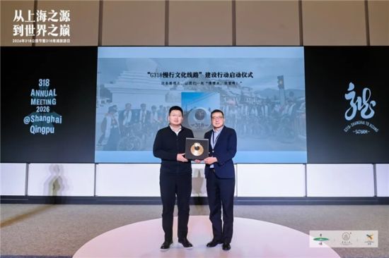 备受瞩目的“318龙标”于仪式上正式发布,并将建立认证体系,旨在为旅行者在318上寻找和打造优质的公路旅行产品和服务。同时,首届年会举办地四川雅安、第二届年会举办地西藏林芝与本届年会主办地上海青浦的三地代表,携手国民公路G318文化推广发起人李克崎共同见证,并发布此生必驾318马年纪念版“通关文牒”,三届年会主办方齐聚,让318国道起点、中点、终点的深厚情谊在起点上海交汇,这枚龙标与一纸文牒,也成为G318从“文化唤醒”迈向“产业变现”、助力构建公路旅行服务生态的关键一步。