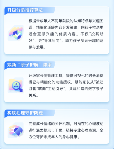 抖音未成年人模式支持用户通过设置年龄来匹配适龄内容。2026年,抖音将对分龄推荐算法进行优化,可基于不同年龄段未成年人的认知特点与兴趣图谱,精细化适龄内容分发策略,推送给未成年人更适合、更感兴趣的优质内容,助力孩子多元兴趣的萌芽与发展。