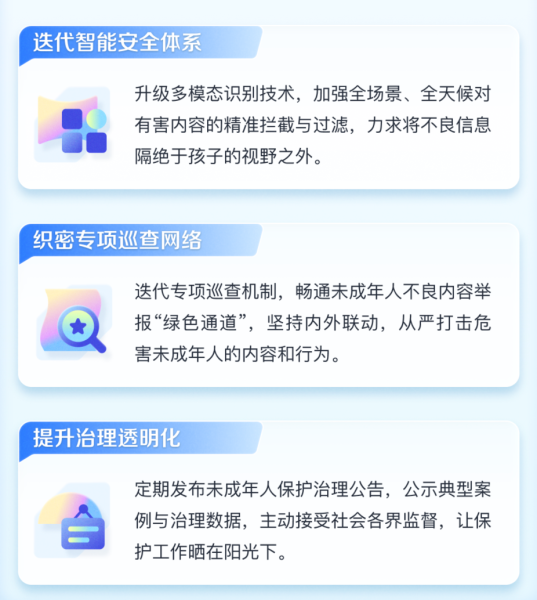 安全是未成年人网络探索的基石。抖音表示,平台将秉持“严管厚爱”原则,以零容忍态度守护清朗网络空间,筑牢数字世界“安全防火墙”。据悉,2025年抖音累计清理涉未成年人相关违规内容240万,处置相关违规账号8.4万。