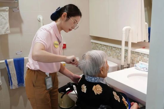过去十年,申园的专业护理,服务品质没有“差不多”,只有“必须到位”。每个月,她们开展内部服务品质检查,覆盖护理师着装、精神面貌;覆盖操作流程是否标准,服务礼仪是否到位。她们坚持对每一处环境设施的安全和整洁维护;坚持让长辈的仪容仪表同样体面。