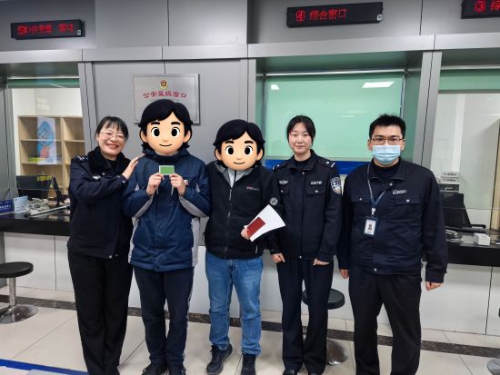 很快,电脑系统提示审核已通过,沪民警也很快完成制证交予当事人。这张刚从机器里“吐”出来的临时身份证,还留有余温,一下子化开了小胡凝固多日的愁绪。临别前,应小胡父亲的请求,一张特别的合影定格了这次跨越千里的“连线办证”,也为2025年的工作画上了圆满的句号。