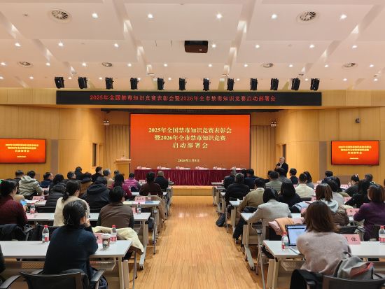 中新网上海新闻1月6日电(记者 李姝徵)1月5日下午,2025年全国禁毒知识竞赛表彰会暨2026年全市禁毒知识竞赛启动部署会在普陀区青少年活动中心召开。市禁毒办主任周国庆,普陀区委常委、政法委书记张伟,市教委青保处处长陆黎英,团市委权益部部长褚鑫钰,各区委政法委分管领导,普陀区教育局、团区委分管领导等出席会议。会议由市委政法委毒品预防处处长董立武主持。