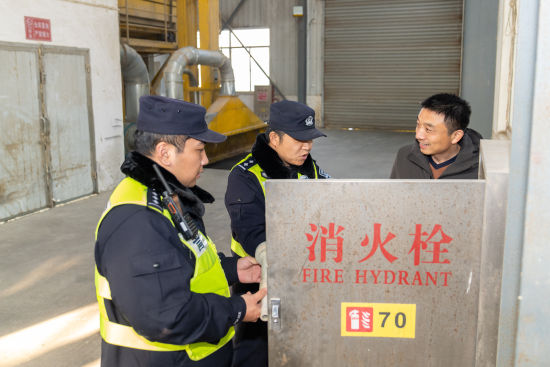 民警在企业粮库开展安全走访。沈群 摄