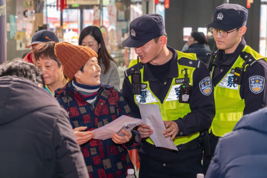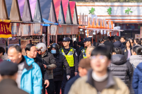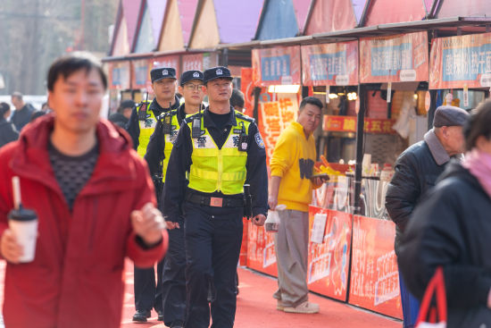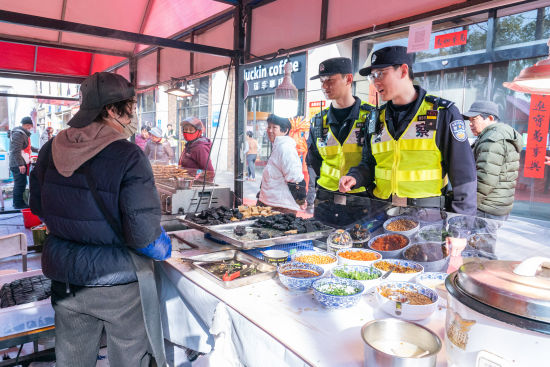 城桥派出所民警在年货节现场开展安保执勤工作。沈群 摄