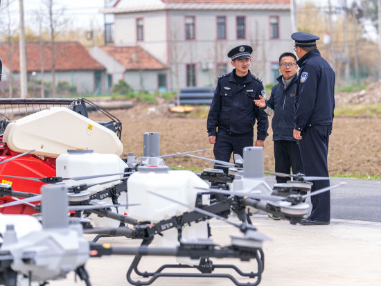 中新网上海新闻3月31日电(记者 殷立勤)眼下正值春耕农忙时节,各类大型农用无人机进入高频作业期。为进一步加强农用无人机安全管理,防范“黑飞”等安全隐患,3月30日,上海市公安局崇明分局竖新派出所组织民警来到辖区东禾九谷农场,开展农用无人机安全检查和规范管理工作,全力筑牢春耕期间“低空经济”安全防线。
