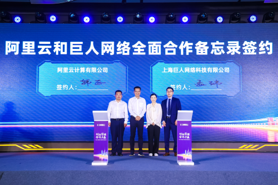 阿里云智能首席商业官蔡英华,阿里云智能全球商业副总裁、上海大区总经理,巨人网络首席执行官刘伟,巨人网络首席财务官兼董秘孟玮等出席签约仪式。