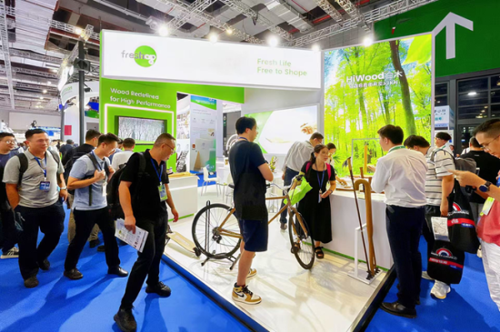 同时,HiWood打造三大功能展区:品牌主展台以“自然可持续”为主题,展示创新材料、播放动画并设互动区解答疑问;创新产品展区(展会官方邀请制,代表行业领先创新水平)展示多规格产品及无人机、球拍等应用;体育装备展区首展登山杖、自行车等产品,吸引多家制造商咨询合作。