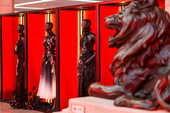 当秋意逐渐漫过海派建筑的砖墙,梧桐叶影斑驳了百年时光;当时尚的脉动叩响历史的大门,一场关于东方美学的对话,在岁月沉淀的殿堂里悄然生长。除了目不暇接的秀场发布,同时期举办的新中式生活美学展同样引人入胜。熊英·盖娅传说逾20套米兰时装周秀款的集中展示,让观众得以近距离感受国际舞台上的东方表达和高定服饰的精湛工艺。或将非遗绒花艺术与神秘宇宙意象深度融合;或将轻中式廓形、雅致色彩与细腻工艺相融;亦或将非遗绣法与流动丝线为笔,让水墨的飘逸、霞光幻境的浪漫融于衣间,在一针一线中,织就独属于熊英·盖娅传说那如花如诗的东方意境。具有海派典型风格的庄容典雅之作与上海市历史博物馆的氛围相得益彰,以中华文化滋养服饰设计深度,脱离表面元素的堆砌,实现深入肌理的新中式精神传承。中元素展现出了对品质的极致追求,将东方文化元素巧妙融入每一处细节,在传统西装的刻板与复古中装的小众之间,找到承载民族文化认同,且适合日常穿着的服装品类。