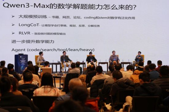 上海人工智能实验室的张文蔚团队展示“书生”模型的深度推理;阿里通义实验室刘大一恒和卓越团队演示了Qwen3-Max模型的“思维进化”;商汤科技肖鹏带来的“日日新”模型展示;字节跳动Seed团队介绍了Seed-Prover模型采用形式化数学的路径。