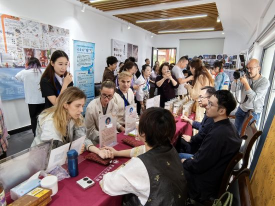 另一侧的“健康咨询角”则成为跨国文化交流的微缩场景。青浦区中医医院的医师用英语向外国游客讲解穴位按摩,现场演示的“三分钟缓解头痛”手法引发阵阵惊叹。来自澳大利亚的来宾卡特琳娜(Kateryna)说:“我要把这段视频发给我的家人,让他们也试试中国医生的魔法!”