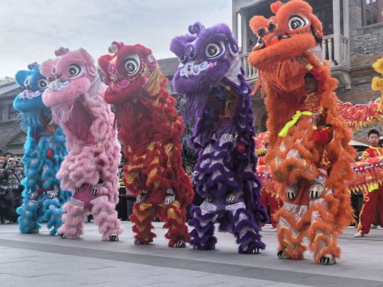 百年建筑颍川寄庐前的广场上,一条约十八米长的祥龙昂首摆尾、灵动穿梭,六只色彩艳丽的瑞狮憨态可掬又气势威武,呼应助威、拜贺迎新。“祥龙腾跃、六狮贺岁”的磅礴阵势,为马年新春献上气势十足的开场,引得观众鼓掌喝彩。每一个腾挪跳跃、每一次摇头摆尾,都将舞蹈的肢体语言、戏曲的步法亮相、武术的精气神韵完美融入舞龙技巧。龙狮队更踏着铿锵激昂的鼓乐伴奏走街串“弄”开启巡游,以非遗之韵点亮马年新始,以灵动之姿传递美好祝福。这场兼具观赏性、文化性与氛围感的年味盛宴,既有传统民俗的庄重感,又有新春佳节的趣味性,让百年弄堂的海派年味,在新春伊始便热闹升腾。