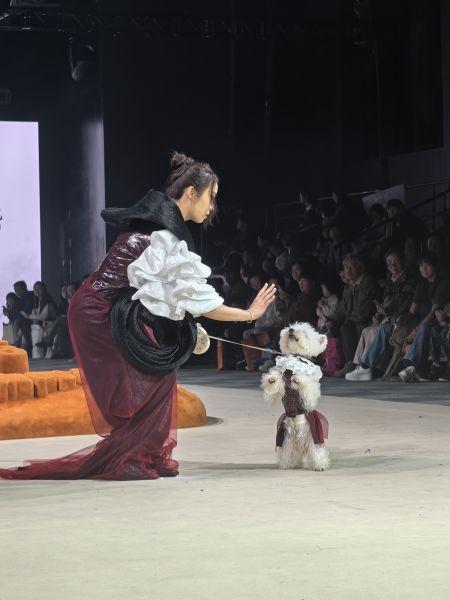 “这是我第一次参与大型专业时装周,从图纸绘制到作品落地,全程充满惊喜与挑战。”参加活动的学生小陆在此收获了别样成长。她表示,此次经历让自己对“商艺融通”有了更直观的理解。“这次实践不仅提升了协作能力,更激发了创作热情,未来我会更加注重理论与实践结合,在亲宠设计领域积累更多经验。”
