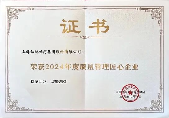 该评选活动由中国医药质量管理协会组织,是医药行业质量管理领域的一项重要权威评选。评审围绕质量发展、创新驱动、品牌实力与综合绩效四大维度,历经多轮专家独立评审、社会公示与协会审定等严格程序,最终选拔出在质量管理实践中成果显著、具有行业引领作用的优秀企业。上海细胞的入选,不仅反映了其在质量管理体系建设上的深厚积累与创新成果,也进一步巩固了其在医药行业,特别是细胞治疗领域的标杆形象。