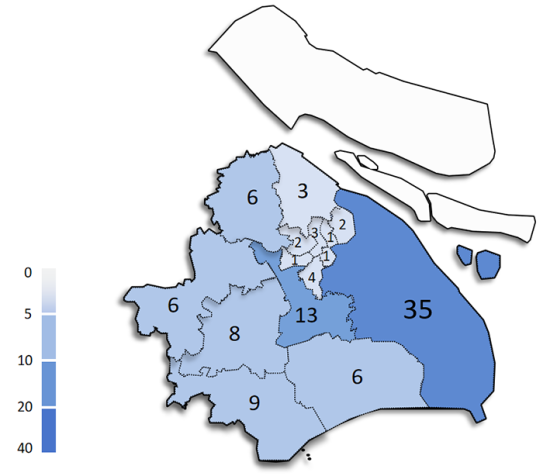 图6 上海制造业市值百强企业地域分布