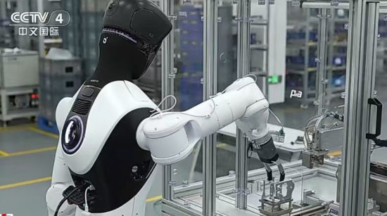 新一代轮式机器人“G2”正在进行上岗前真机测试(央视新闻截图)。