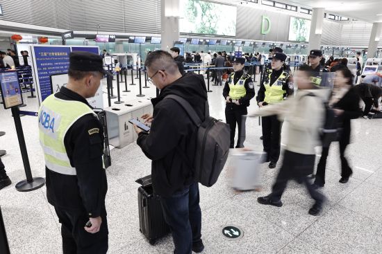 前期,围绕治安防控重点环节、突发事件先期处置等事项,虹桥候机楼治安派出所对辖区单位保安队伍开展实战实训。这支由虹桥国际机场东片区27家企事业单位保安员组建的队伍,在工作中及时发现居无定所人员、积极救助醉酒人员、跨前缓解群众纠纷。在元旦、春节假期,针对少年儿童旅客增多情况,虹桥候机楼派出所“虹源女飞警”工作室成员加入联防巡查队伍,联合处置儿童走丢、无陪伴儿童乘机、反诈宣传等工作。