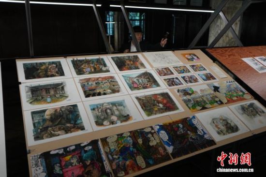 邱炯炯为《椒麻堂会》创作的分镜图在上海展出。 中新网记者 张亨伟 摄