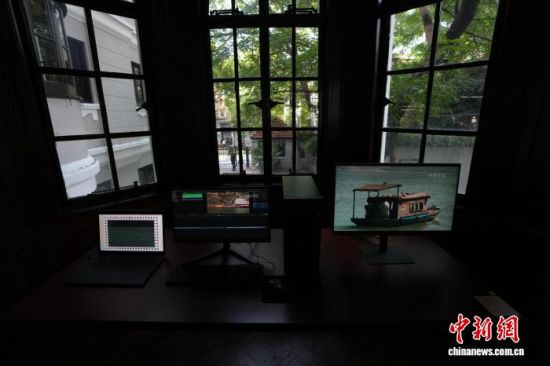 视频装置《由影像开始》。 中新网记者 张亨伟 摄
