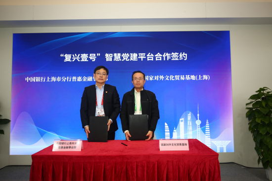 对接会伊始,中国银行上海市分行与国家对外文化贸易基地(上海)就“复兴壹号”智慧党建平台合作进行签约,促进金融与文旅在党建引领下开启协同发展新篇章。