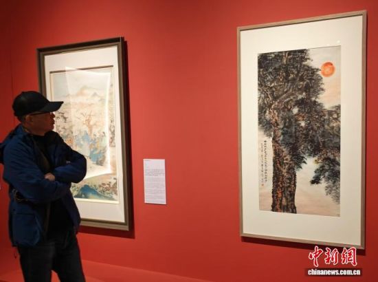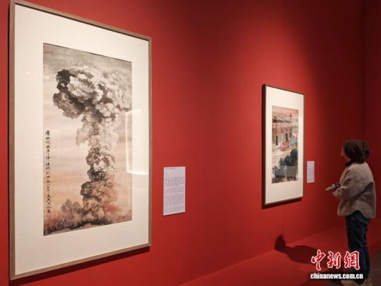 吴湖帆名作《庆祝我国原子弹爆炸成功》亮相大展。中新网记者 姜煜 摄