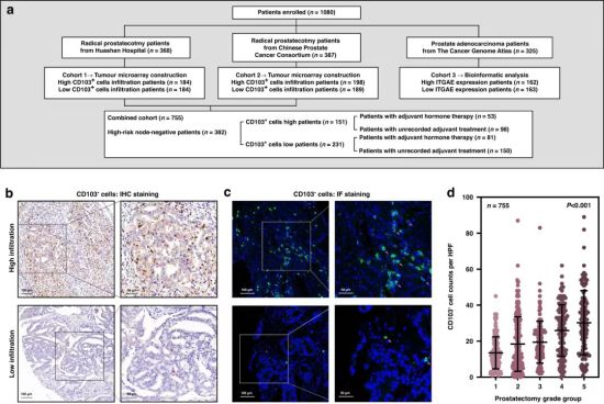 该研究首次揭示了中国人群前列腺癌CD103阳性富集亚型的免疫特征与临床意义,成功找到了藏匿在肿瘤杀伤性免疫细胞中的“叛徒”( CD103)。